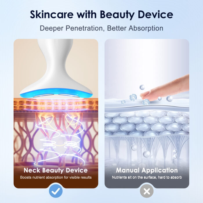- Effortless Operation: User-friendly design—apply your favorite skincare products, select your desired mode, and gently glide the massager over your skin for lifting and rejuvenation.